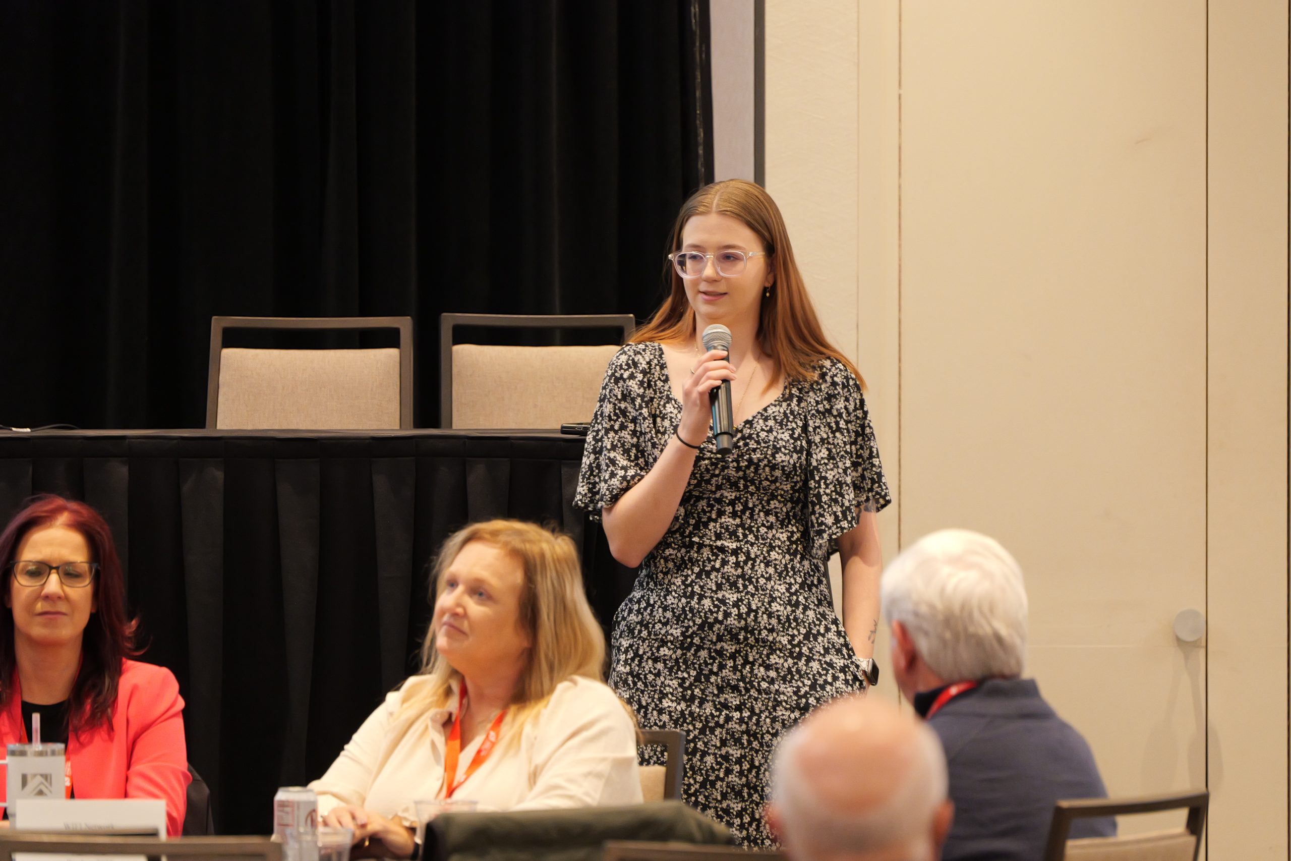 KCNE Scholarship recipient Marrissa spoke to the audience at the 2025 WCAN Symposium. Her story of courage in reaching for her education in spite of losing her father to a workplace accident inspires us to continue our work for Nebraska kids.